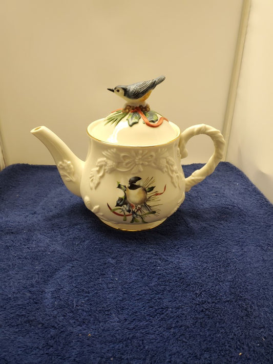 Lenox Winter Greetings Sculpted Teapot (Blue Bird Finial)